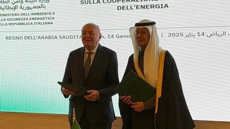 Nel corso dell’incontro tra i due ministri è stato sottoscritto un Memorandum d’Intesa (MoU) tra Italia e Arabia Saudita. Il testo avrà una validità di cinque anni e mira a rafforzare la cooperazione su transizione e sicurezza energetica, tenendo conto degli obiettivi di Parigi e dell’Agenda 2030.