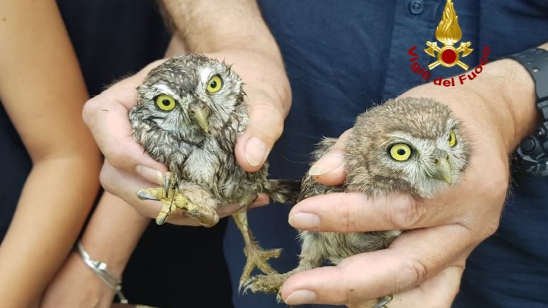 Straordinario salvataggio di due piccoli di civetta da parte dei vigili del fuoco.