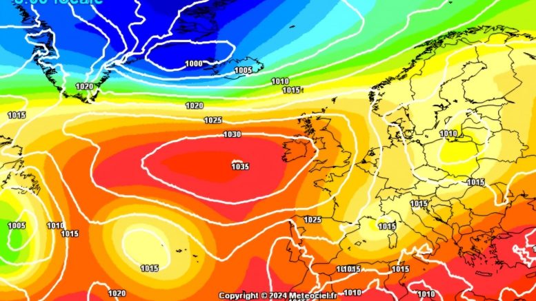 Nell’immagine la pressione in quota e al suolo per sabato pomeriggio, fonte meteoblue.com