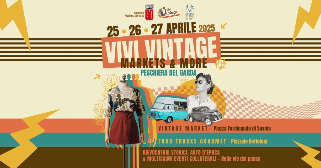 Dal 25 al 27 aprile a Peschiera del Garda “Vivi Vintage & Street Food”, una tre giorni dedicata al fascino del passato. La manifestazione, a ingresso gratuito, sarà in piazza Ferdinando di Savoia e piazzale Betteloni con un programma all’insegna della moda, del design e della cultura vintage.