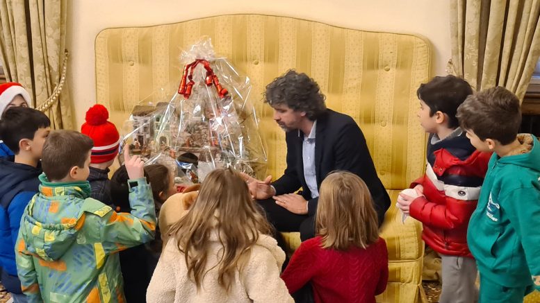 Alunni e alunne dell’Istituto comprensivo IC8 regalano un presepe al sindaco Damiano Tommasi.