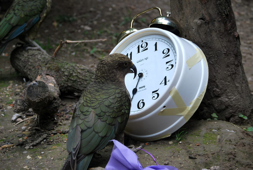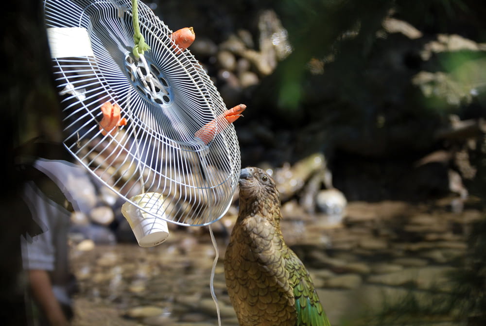 Una volta diffuso in tutta la Nuova Zelanda, il kea (il cui nome deriva dal suono che emette) ha subito un declino rapissimo nel giro di poco più che un secolo e oggi sopravvive confinato sulle montagne dell’Isola del Sud. Conosciuto come il “distruttore” più intelligente del regno animale, è in grado di demolire una sedia in plastica, una bicicletta o un passeggino. Scioglie corde annodate e apre scatole di cartone. Il che, unito alla perdita di habitat naturale, lo porta inevitabilmente a contatto e in conflitto con l’uomo. In natura, gli ultimi 4mila esemplari stimati si spingono fino ai 2mila metri di quota e secondo i ricercatori è stato proprio l’habitat inospitale ad aver stimolato in loro una straordinaria abilità intellettiva e manipolativa. Oltre che aver determinato una dieta onnivora condita da uno spiccato opportunismo. Papà Nestore in questo momento, ha la grande responsabilità di allevare tre esemplari preziosi, destinati a conservare il patrimonio genetico di una specie che in natura rischiamo di perdere.