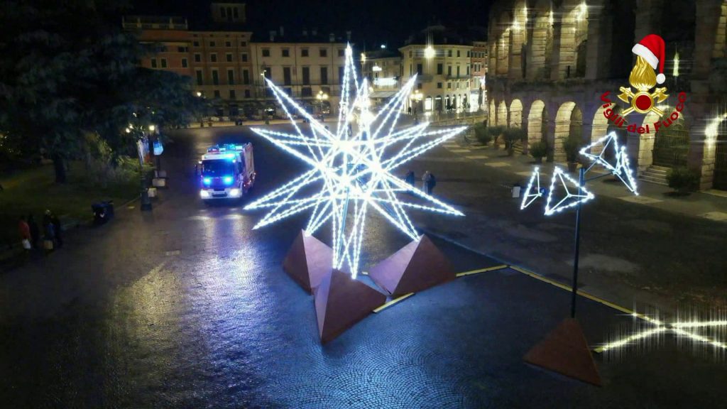 I vigili del fuoco del Veneto e del Trentino hanno scelto proprio Verona, con la nuova Stella in piazza Bra, per i loro auguri di Natale. Immagini suggestive, dove proprio la nostra città, tra l’Arena e la Stella, diventa protagonista assoluta. Un altro emozionante video di auguri che si aggiunge a quello, irresistibile e commovente, dei vigili del fuoco di Verona.