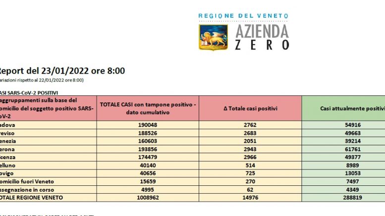 Covid a Verona e in Veneto, ecco il bollettino aggiornato: nelle ultime 24 ore in Veneto si sono registrati 14.976 nuovi positivi (ieri 18.773). Il totale dei casi attualmente positivi a 288.819, ovvero 10.988 più di ieri. I decessi registrati nelle ultime 24 ore sono 12. Nello stesso periodo invece sono stati 2.943 (ieri 3.688) i nuovi positivi registrati nella sola provincia di Verona: il numero degli attualmente positivi a Verona e provincia è ora di 61.761 (+ 1.803).