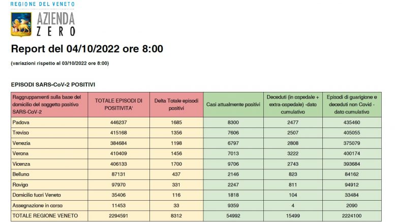 Negli ospedali del Veneto aumentano i ricoveri in area medica, che sono ora 665 (+ 45), mentre sono invariati (26) i pazienti in terapia intensiva.