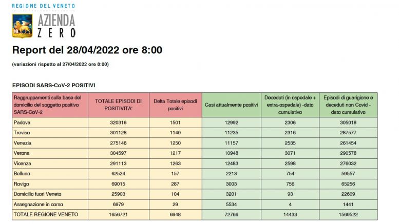 Covid a Verona e in Veneto, ecco il bollettino aggiornato: nelle ultime 24 ore in Veneto si sono registrati 6.948 nuovi positivi. Il totale dei casi attualmente positivi è ora di 72.766. I decessi registrati nelle ultime 24 ore sono 9, dei quali nessuno a Verona. Nello stesso periodo invece sono stati 1.217 i nuovi positivi registrati nella sola provincia di Verona: il numero degli attualmente positivi a Verona e provincia è ora di 10.948.