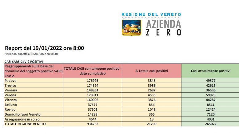 Covid a Verona e in Veneto, ecco il bollettino aggiornato: nelle ultime 24 ore in Veneto si sono registrati 21.209 nuovi positivi (ieri 25.166), che portano il totale dei casi attualmente positivi a 265.072, ovvero 9.158 più di ieri. I decessi registrati nelle ultime 24 ore sono 26. Nello stesso periodo invece sono stati 4.535 (ieri 5.302) i nuovi positivi registrati nella sola provincia di Verona, che ha di nuovo il dato peggiore della regione: il numero degli attualmente positivi a Verona e provincia è ora di 59.973 (+2.302).