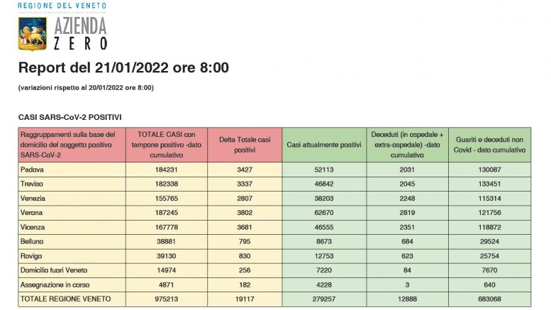 Covid a Verona e in Veneto, i contagi cominciano a frenare. Ma ecco il bollettino aggiornato: nelle ultime 24 ore in Veneto si sono registrati 19.117 nuovi positivi (ieri 21.833), che portano il totale dei casi attualmente positivi a 279.257, ovvero 5.362 più di ieri. I decessi registrati nelle ultime 24 ore sono 24. Nello stesso periodo invece sono stati 3.802 (ieri 4.532) i nuovi positivi registrati nella sola provincia di Verona, che ha di nuovo il dato peggiore della regione: il numero degli attualmente positivi a Verona e provincia è ora di 62.670 (+692).
