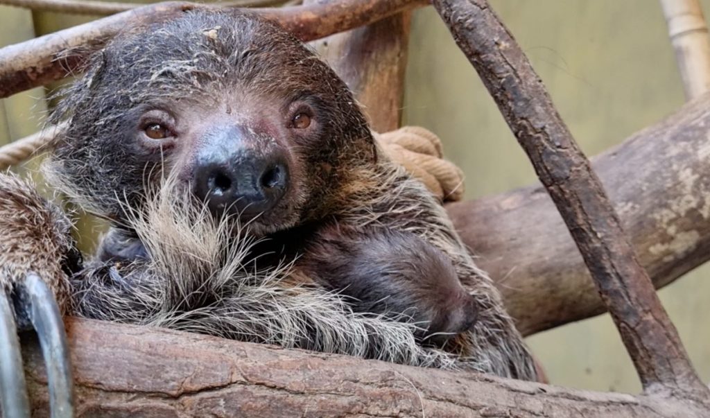 Mamma e piccolo stanno bene, avvolti in un abbraccio che permette al neonato di tenersi al caldo e al sicuro ben ancorato al ventre della sua mamma. Ancora per un paio di settimane, quando non inizierà a girovagare da solo. Il che forse aiuterà ad osservarne anche il sesso. Ormai sedicenne, Wendy è una bradipa esperta e sicura di sè, che trascorre molto tempo sui rami più alti. Ma che di tanto in tanto, si concede di scendere per riposare un pò tra le foglie di banano.