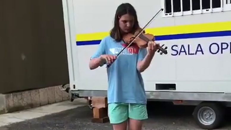 Ha 12 anni, viene dall’Ucraina, in fuga dalla guerra, ed è ospitata nell’hub di Isola della Scala. La sua passione per la musica, e la voglia di ringraziare il Paese che la ospita, l’ha convinta a fare questa piccola grande cosa: imparare l’inno di Mameli in pochi giorni, e suonarlo con il suo violino.