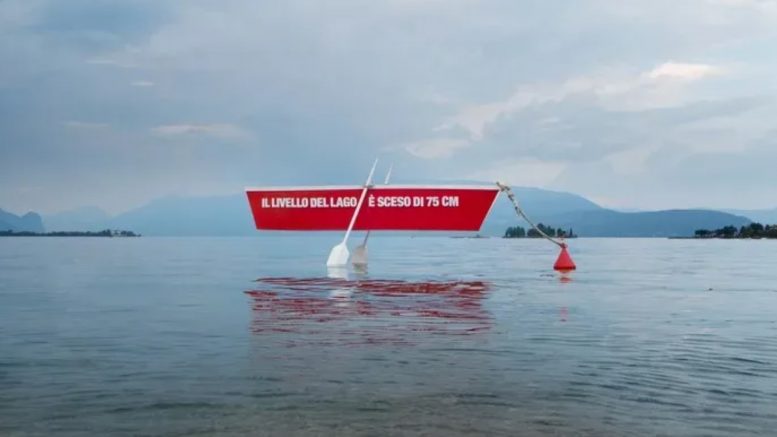 Una barca sospesa nel nulla sul lago di Garda, per rendere il più chiaro possibile quali effetti possono avere i cambiamenti climatici. L’installazione è stata creata da E.On per attirare l’attenzione sulla diminuzione del livello dell’acqua che il lago ha subito negli ultimi anni, “risultato delle azioni irresponsabili dell’uomo sul pianeta”.