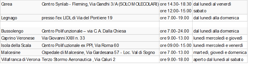 Orari e sedi dei tamponi a Verona.