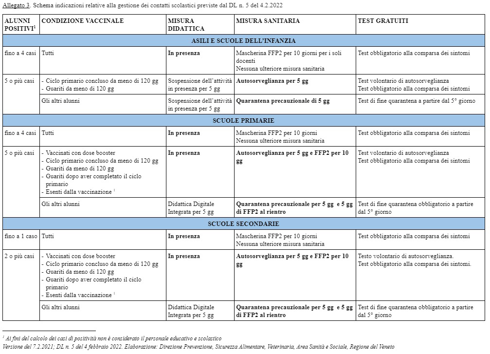 Tamponi, mascherine, test e quarantene nelle scuole di Verona e del Veneto, farsi largo tra le mille variabili e i tantissimi cambi di scenario non è sempre facile. Ecco quindi una tabella, aggiornata dalla stessa Regione Veneto, che spiega in dettaglio cosa fare e come comportarsi, prendendo in esame tutti i casi possibili.