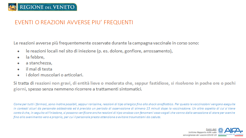 Il punto sulle reazioni avverse al vaccino in Veneto.