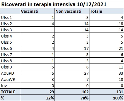 “I dati di oggi – fa notare Zaia – ci dicono che, su 131 ricoverati in terapia intensiva, il 78% è composto da pazienti non vaccinati e il 22% da vaccinati. Ipotizzando che l’intera popolazione fosse vaccinata – aggiunge – avremo solo 22 ricoverati in terapia intensiva, il che, in una ipotetica distribuzione provinciale significherebbe circa 3 per ogni provincia. La terapia intensiva è il settore che manda più in crisi il sistema ospedaliero. Comunque dobbiamo prendere atto che il vaccino sta funzionando, visto che abbiamo una grossa pressione dai non vaccinati. L’invito a tutti – dice Zaia – è di vaccinarsi. Ben vengano anche le prime dosi, che anche ieri sono state 2.980, mentre vanno bene le terze dosi, delle quali ieri ne sono state erogate ben 42.236”.