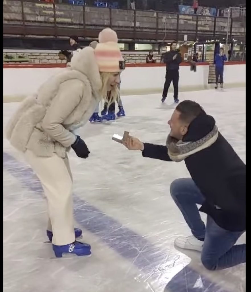 Sulla pista del palaghiaccio di Bosco Chiesanuova, la romantica proposta di matrimonio di Diego a Sofia. Le foto.