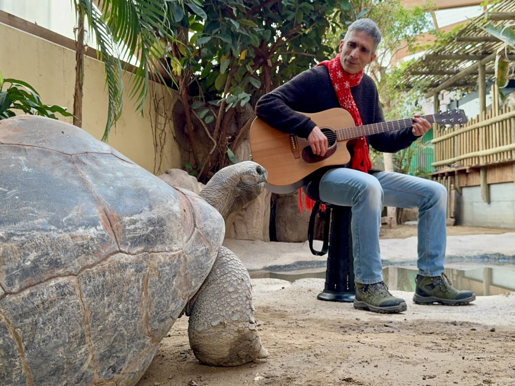 A bordo di un pick-up tra le giraffe o seduti su uno sgabello tra le testuggini giganti, i musicisti Michele Negrini (Michele Mud) e Ivan Ottolini (Ivan Wildboy) hanno portato i classici della tradizione – da Jingle Bells a Silent Night – negli habitat. Non si è trattato però di un semplice intrattenimento: l’iniziativa è parte di un progetto di ricerca della Fondazione Zoom, in collaborazione con le Università di Parma e di Padova, volto a valutare scientificamente la risposta comportamentale degli animali alle frequenze musicali.
