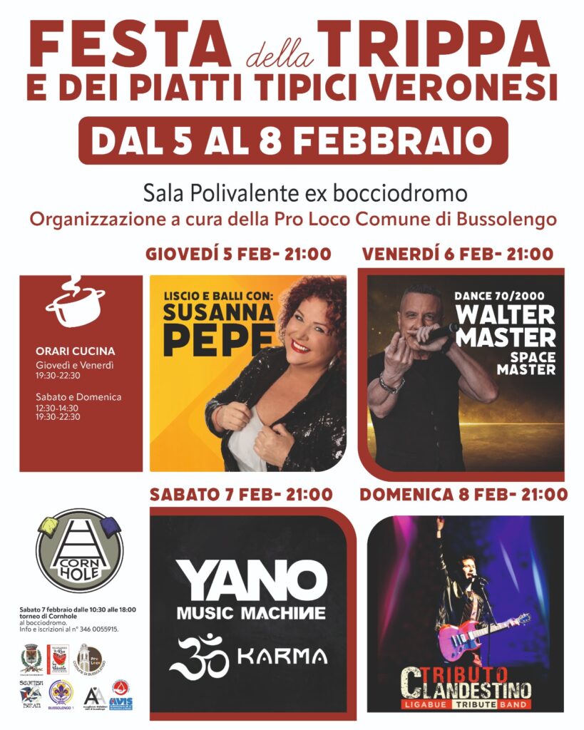Dal 5 all’8 febbraio, nella sala polivalente dell’ex bocciodromo di Bussolengo, torna la “Festa della trippa e dei piatti della tradizione veronese”. Un appuntamento che non è solo una rassegna gastronomica, ma un rito organizzato dalla pro loco per celebrare le radici e la convivialità scaligera.