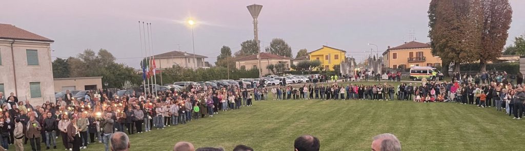 Centinaia di persone si sono ritrovate nella serata di giovedì 16 ottobre per partecipare alla fiaccolata e alla veglia di preghiera in memoria di Marco Piffari, Davide Bernardello e Valerio Daprà. i tre carabinieri tragicamente deceduti martedì 14 ottobre nell’esplosione del casolare dei fratelli Ramponi.