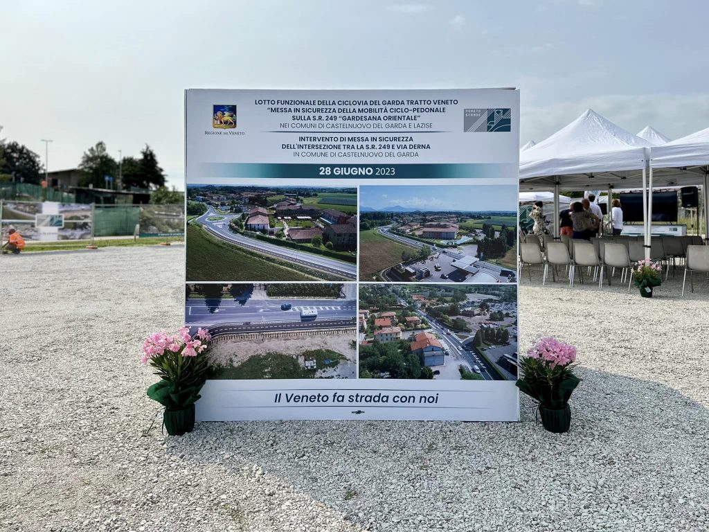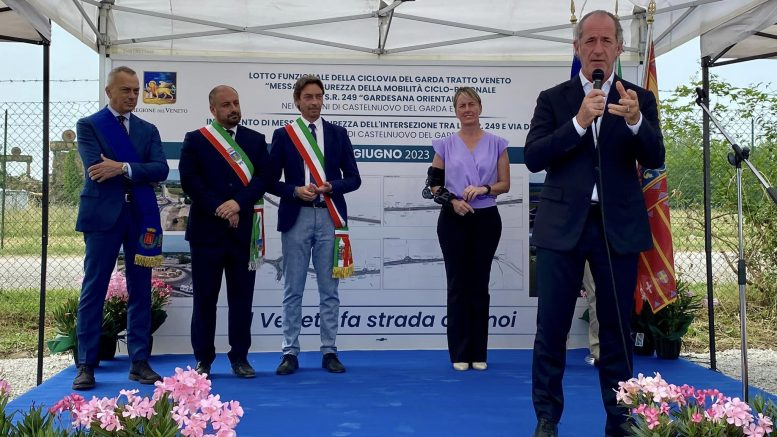 Inaugurata oggi, alla presenza del governatore del Veneto Luca Zaia, la nuova ciclovia del Garda tra Castelnuovo e Lazise. L’obiettivo è la sicurezza stradale: la regionale 249 Gardesana è la seconda strada più pericolosa d’Italia per la mobilità lenta, i numeri parlano chiaro: tra il 2017 e il 2021 in questa strada ci sono stati 464 incidenti, 549 feriti e 11 decessi. È importante quindi offrire alle biciclette una via dedicata, separata dalla carreggiata. Si tratta di un progetto fortemente voluto dalla Regione, inoltre i lavori sono stati terminati con 190 giorni d’anticipo a testimonianza della grande collaborazione fra i vari enti.