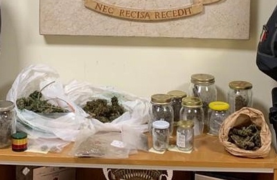 Avendo rinvenuto un modesto quantitativo di sostanza stupefacente detenuta dall’uomo, i Baschi Verdi hanno eseguito una perquisizione domiciliare, rinvenendo ulteriore sostanza per un totale di poco meno di 300 grammi di marijuana, contenuta in vasetti di vetro e buste di carta e nylon. Le Fiamme Gialle hanno pertanto proceduto al sequestro penale della sostanza stupefacente e all’arresto del soggetto, per il reato di detenzione ai fini di spaccio di sostanze stupefacenti.