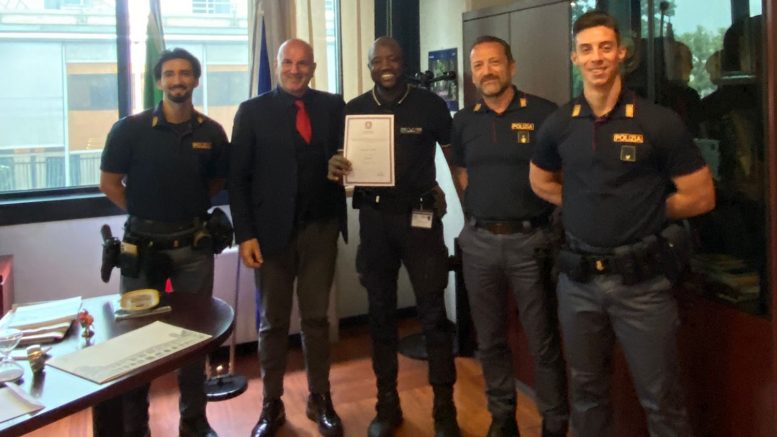 Nel frattempo venivano allertate le Volanti della polizia che, giunte sul posto, e grazie al contributo di Moustapha, hanno arrestato il giovane marocchino, poi accompagnato in carcere a disposizione dell’Autorità Giudiziaria. Questa mattina il giudice ha convalidato l’arresto. Per sottolineare il senso del dovere e la professionalità di Moustapha nella serata di ieri, il questore di Verona Roberto Massucci lo ha ricevuto insieme agli agenti delle Volanti che hanno operato l’arresto consegnandogli l’attestato di “Amico della Questura di Verona”.