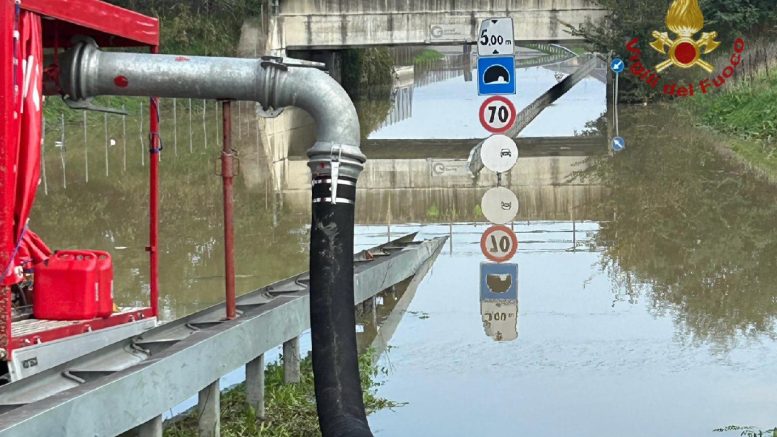 Tra i soccorsi prestati alla popolazione il prosciugamento di sottopassi stradali e in particolare il prosciugamento di un’azienda agricola sommersa dall’acqua.