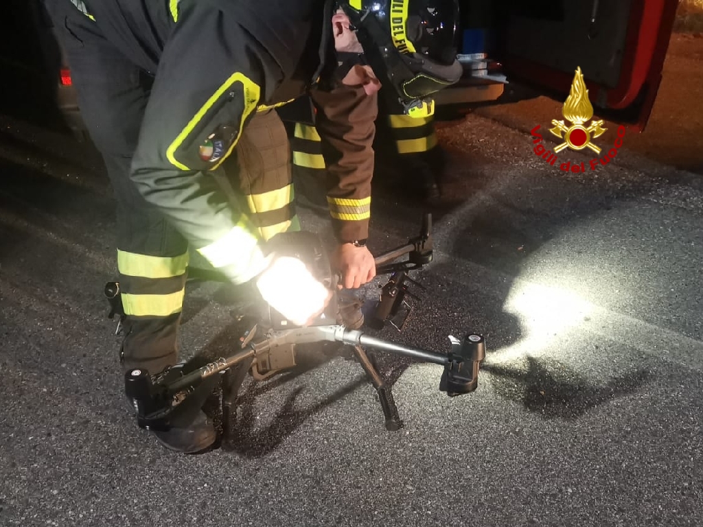 Temendo il proprietario – poi rivelatasi una 55enne di Legnago – si fosse spostato a piedi e fosse in difficoltà da qualche parte, le ricerca sono state allargate a un’area più ampia e sono intervenuti anche i droni dei vigili del fuoco, giunti sul posto dal distaccamento di Bardolino con 2 mezzi e 5 uomini, dotati di termocamera. Intorno alle ore 22.15, proprio grazie al sorvolo dei droni dotati di termocamera, la donna è stata individuata, a circa 300 metri dal mezzo in una zona impervia.