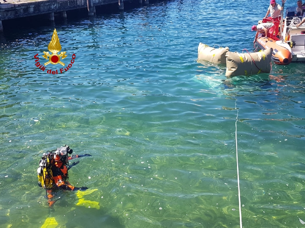 Il lavoro dei vigili del fuoco è proseguito per tutta la mattina con il recupero della vettura, evitando così un inquinamento da idrocarburi e mettendo in sicurezza il pontile d’attracco dei traghetti,