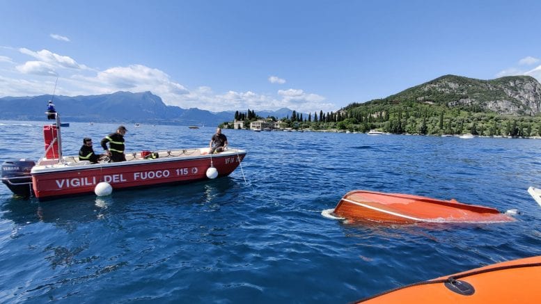 Barca si ribalta nelle acque del lago di Garda al largo di Punta San Vigilio.