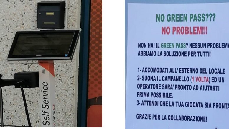 Sempre all’esterno del negozio era presente l’indicazione esplicita di come il prenotatore fosse destinato ai clienti non muniti di Green pass, in aggiramento dell’obbligo previsto per l’accesso agli esercizi dedicati al gioco. È stata altresì comminata la sanzione amministrativa in misura ridotta pari a 16.666 euro per la mancanza all’interno dell’esercizio del prescritto materiale informativo predisposto dalle aziende sanitarie locali contro la ludopatia.