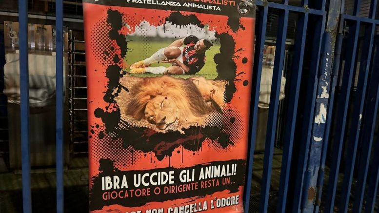 Centopercentoanimalisti torna a Verona e stavolta prende di mira Zlatan Ibrahimovic. Lo fa affiggendo uno striscione al Bentegodi, dove domenica prossima proprio il Milan giocherà contro i gialloblù dell’Hellas Verona.