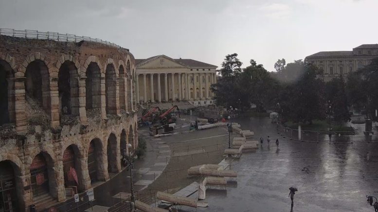 La pioggia, per fortuna con pochi episodi di grandine, almeno per il momento, è arrivata anche in centro città. In Lessinia in particolare si segnala qualche grandinata qua e là.