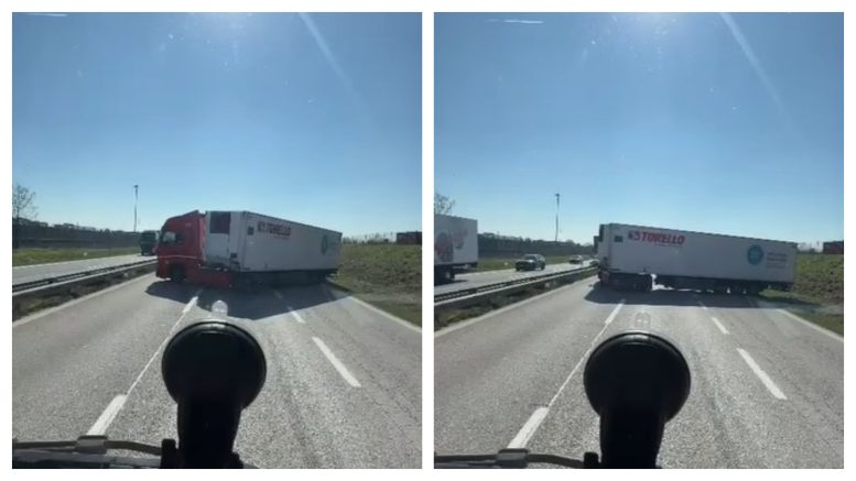 Tutta la manovra di inversione è stata infatti ripresa in un video da un altro camionista che transitava in quel momento. Fortunatamente tutto si è concluso senza incidenti.