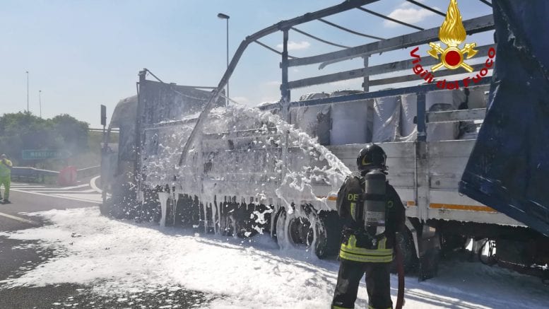 Alle 14:30, i vigili del fuoco sono intervenuti lungo l’autostrada A4 nei pressi dell’uscita di Montecchio Maggiore in direzione Milano per l’incendio di un autoarticolato carico di rotoli di tessuti per la lavorazione di scarpe: nessuna persona è rimasta ferita.