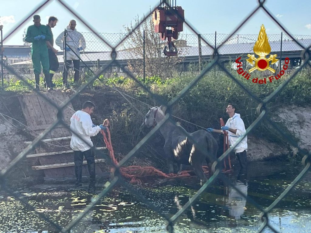 Cavallo in difficoltà salvato dai vigili del fuoco a Roverchiara.