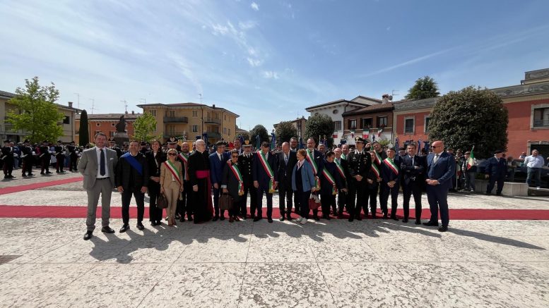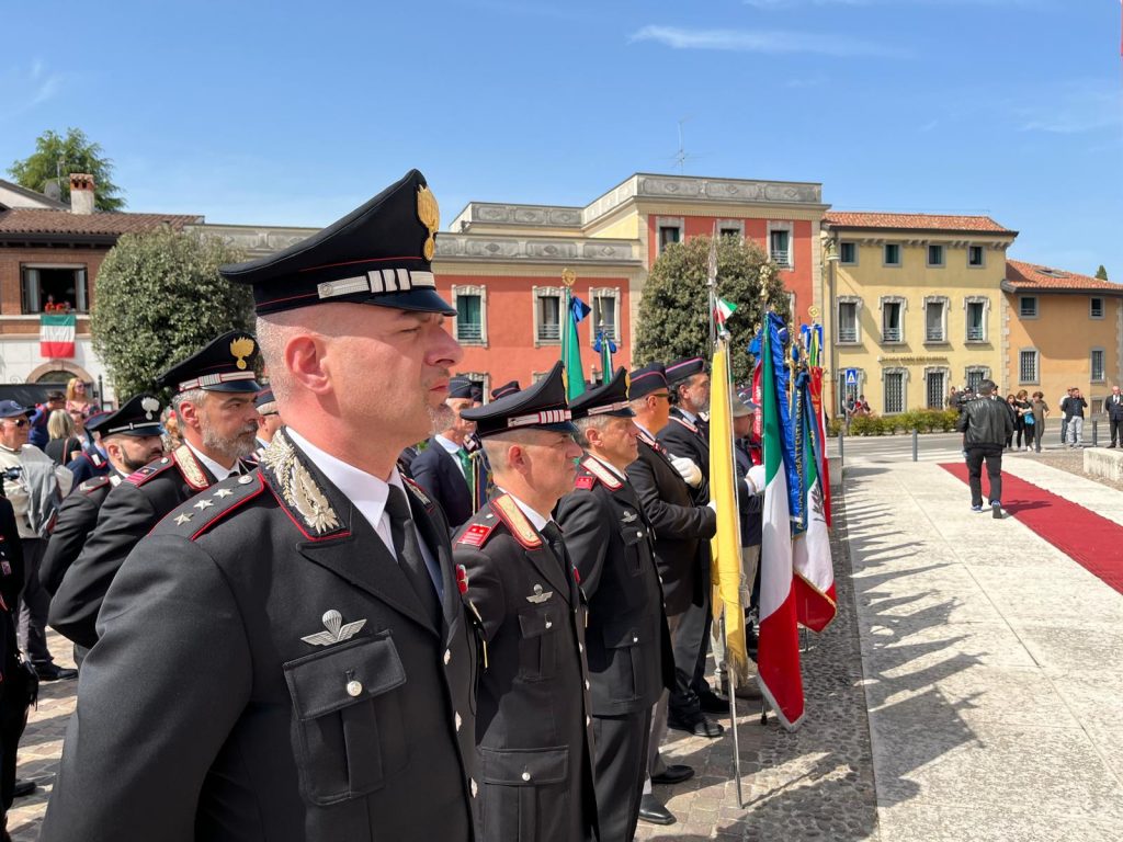 Nella piazza del Comune, alla presenza del Generale di Corpo d’Armata Maurizio Stefanizzi, Comandante Interregionale Carabinieri Vittorio Veneto, e del Generale di Brigata Giuseppe De Liso, Comandante della Legione Carabinieri Veneto, sono stati rievocati i fatti d’arme verificatesi nelle alture di Pastrengo: durante la prima guerra di indipendenza tra l’esercito del Regno di Sardegna e l’impero austriaco, il Re Carlo Alberto, superata la fortezza di Peschiera e scortato da 3 Squadroni di Carabinieri Reali a cavallo, nel portarsi su una collina per definire le strategie di impiego delle sue truppe, rallentate dal terreno acquitrinoso, venne improvvisamente attaccato dai moschettieri asburgici, che colpirono la sua avanguardia. A difesa del sovrano, il Maggiore Negri di Sanfront ordinò la carica a lame sguainate contro il fronte nemico, che arretrò sotto l’impeto dei Carabinieri Reali, il cui coraggio e valore valse la prima medaglia d’Argento al Valor Militare alla Bandiera dell’Arma.