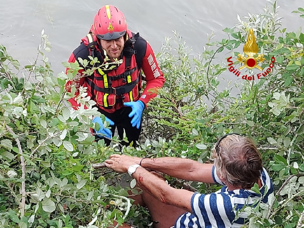 Alcuni passanti dopo aver dato l’allarme al 115 si prodigavano per per assicurare, con una corda, l’uomo in attesa dei soccorsi. I vigili del fuoco, partiti da Verona con 2 mezzi e 7 uomini, giunti sul posto calavano in acqua un operatore SAF (speleo alpino fluviale) che si occupava di liberare dai rovi e vincolare l’uomo per evitare che scivolasse in acqua. Altri pompieri posizionavano, sulla vegetazione, la scala italiana che, utilizzata come passerella, permetteva al ciclista di poter risalire. Portato sul sentiero l’uomo veniva affidato alle cure dei sanitari per essere medicato. Recuperata anche la bicicletta il ciclista, al termine dei controlli sanitari, poteva far rientro alla propria abitazione. Le operazioni di soccorso si concludevano intorno alle ore 17.30.