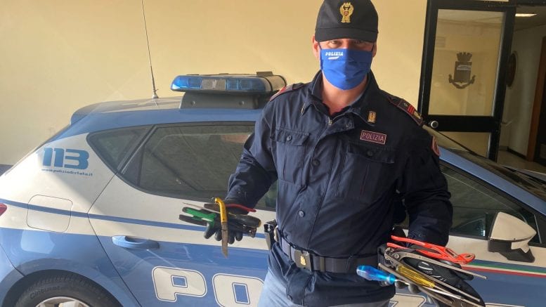 Il conducente, con atteggiamento arrogante e indisponente, ha fornito versioni diverse e contraddittorie in merito alla sua presenza fuori casa dopo le 22, mentre il passeggero, in visibile stato di ebrezza, è apparso irrequieto e scontroso. Un comportamento quello dei due uomini che ha insospettito ancor di più i poliziotti, anche alla luce dei numerosi precedenti a carico di entrambi. Gli operatori hanno pertanto perquisito l’autovettura, rinvenendo all’interno del portabagagli diversi arnesi atti allo scasso, subito posti sotto sequestro.