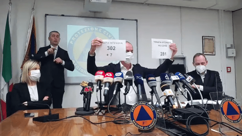 Aumento repentino in Veneto dei decessi per Covid-19. La nostra regione, infatti, registra 52 morti nelle ultime 24 ore, portando a 10.590 il totale delle vittime dall’inizio della pandemia. I nuovi positivi al Coronavirus sono invece 1130, per un totale di 380.521. Gli attuali positivi in regione sono 38.667, 977 in meno rispetto a ieri. Prosegue l’aumento dei dati ospedalieri, con 16 ricoveri in area non critica che portano a 1.897 i letti occupati, e 7 ingressi in terapia intensiva, con 302 ricoverati.
