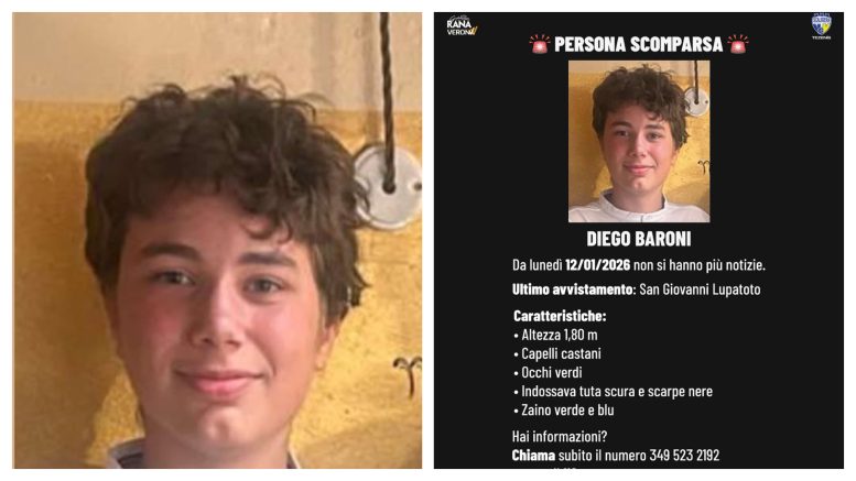 Diego Baroni, 14 anni, da lunedì 12 gennaio scomparso dalla sua casa a San Giovanni Lupatoto: i misteri e le indagini della Procura.