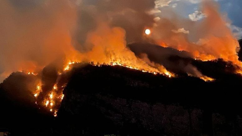 Da ormai parecchie ore un vasto incendio sta devastando i boschi dell’alto Garda, sopra Nago Torbole, alle pendici del monte Baldo. Altissime colonne di fumo sono visibili da chilometri di distanza, con i focolai continuamente alimentati dal vento e dalla vegetazione folta e secca a causa della siccità.
