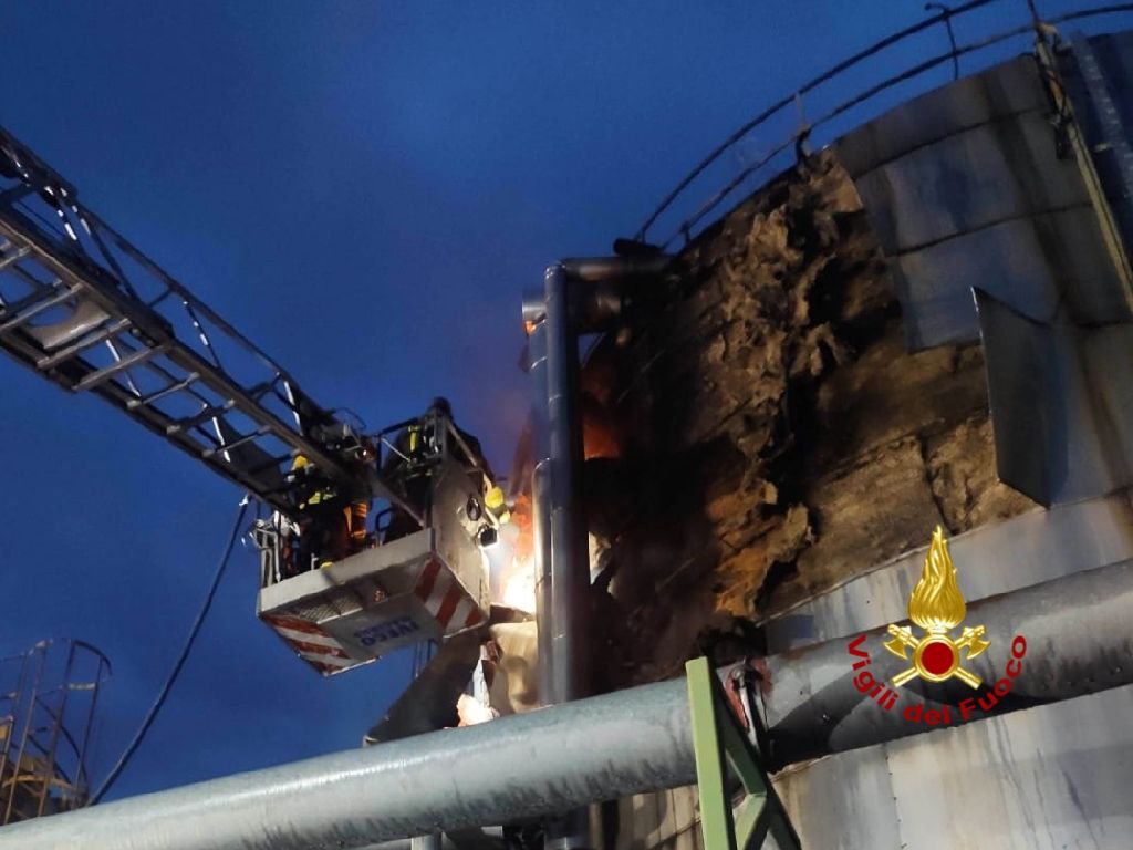 Incendio a Ronco all’Adige, in fiamme un silos per lo stoccaggio del bitume.