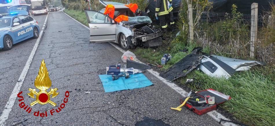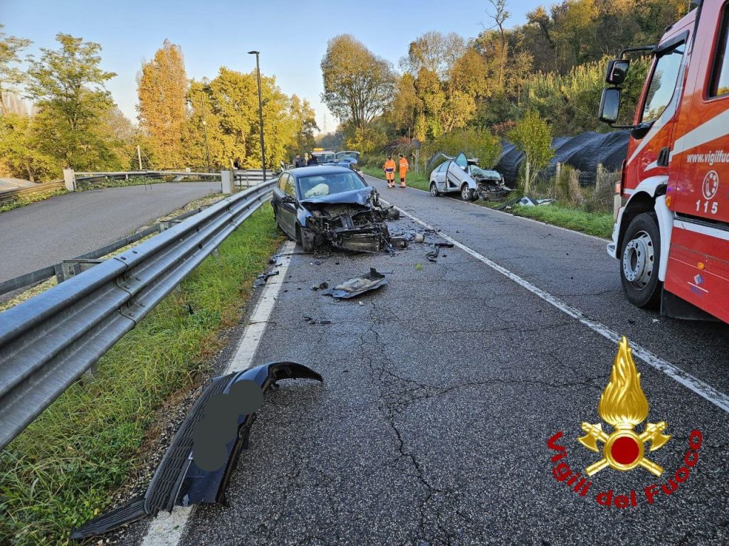Incidente frontale all’alba sulla regionale tra Valeggio e Peschiera: tre le auto coinvolte, un ragazzo incastrato tra le lamiere: tre feriti.