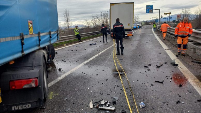 Incidente tra auto e due camion sulla regionale tra Affi e Peschiera.