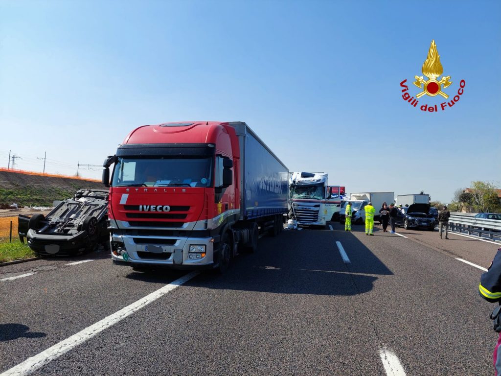 I pompieri accorsi da Lonigo, hanno messo in sicurezza i mezzi ed estratto da un’Audi Q3 due persone rimaste incastrate, mentre altre due sono venute fuori autonomamente. I due feriti sono stati presi in cura da personale sanitario del Suem, stabilizzati e trasferiti in ambulanza in ospedale come anche la conducente dell’auto rovesciata. Mentre altre persone rimaste coinvolte sono state assistite sul posto dai sanitari. Illesi i due autisti e una terza persona a bordo dei mezzi pesanti e il conducente dell’altra auto. durante i soccorsi il traffico è rimasto bloccato. Sono ora in corso le operazioni di rimozione dei mezzi incidentati. Sul posto la polizia stradale e gli ausiliari di autostrada.
