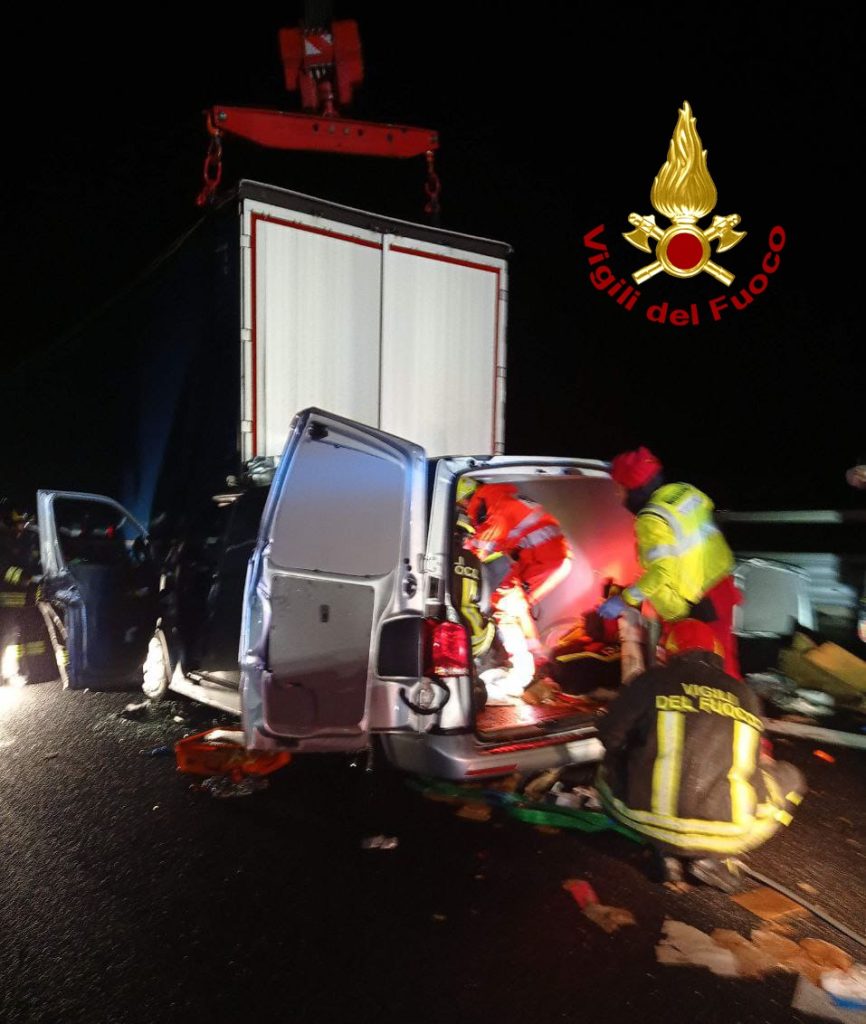 Terribile incidente nella notte tra lunedì 14 e martedì 15 lungo l’autostrada A4: intorno alle 2.15 i vigili del fuoco sono intervenuti al chilometro 458, tra gli svincoli di Latisana e Portogruaro, per un tamponamento che ha coinvolto un furgone e un mezzo pesante fermo in sosta. Nell’impatto è rimasto gravemente ferito il conducente del furgone.