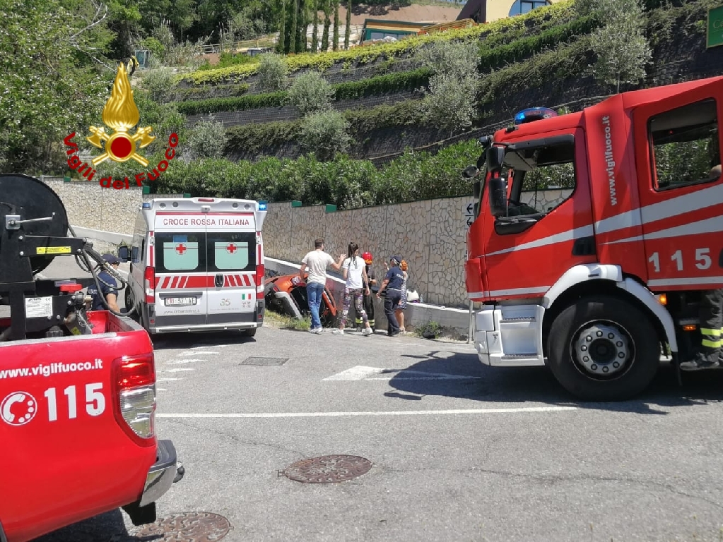 Una vettura, con a bordo 2 persone, per cause ancora sconosciute ha perso il controllo andandosi ad incastrare nel canale di scolo che corre lungo la via. I vigili del fuoco, giunti da distaccamento di Bardolino con 2 mezzi e 5 uomini, hanno operato per liberare dalla vettura il passeggero che, dopo essere stato stabilizzato dai sanitari, è stato imbragato e issato fuori dal mezzo per poi essere trasportato presso il nosocomio di Peschiera del Garda.