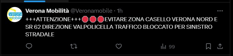 Sul posto sono intervenuti i mezzi di soccorso e la polizia locale di Verona. Inevitabili i disagi per la circolazione. La stessa polizia locale invita a “non transitare in zona”.