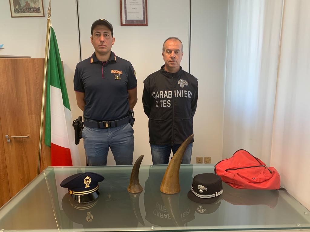Gli operatori della Polaria, una volta giunti sul posto, hanno potuto constatare che a terra, nelle vicinanze della rete tagliata e ad una delle autovetture parcheggiate, vi era uno zaino con la cerniera aperta, dalla quale s’intravvedevano i due corni di rinoceronte. La conferma che si trattassero proprio di esemplari originali è poi arrivata grazie alla collaborazione con il settore specializzato, il Gruppo carabinieri forestale di Verona – Nucleo Cites, diretto dal tenente colonnello Luca Zuccoli.